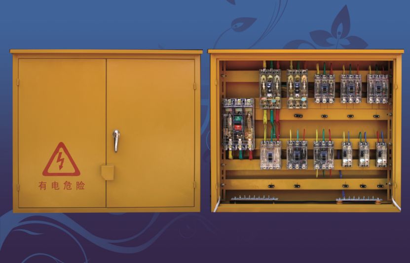 内设200A-250A具有隔离功能的DZ20系列透明塑壳断路器作为主开关(与总配电箱分路设置断路器相适应);采用DZ20或 KDM-1型透明塑壳断路器作为动力分路、照明分路控制开关;各配电回路采用DZ20或KDM-1透明塑壳断路器作为控制开关;PE线连线螺栓、N线接线螺栓根据实际需要配置。